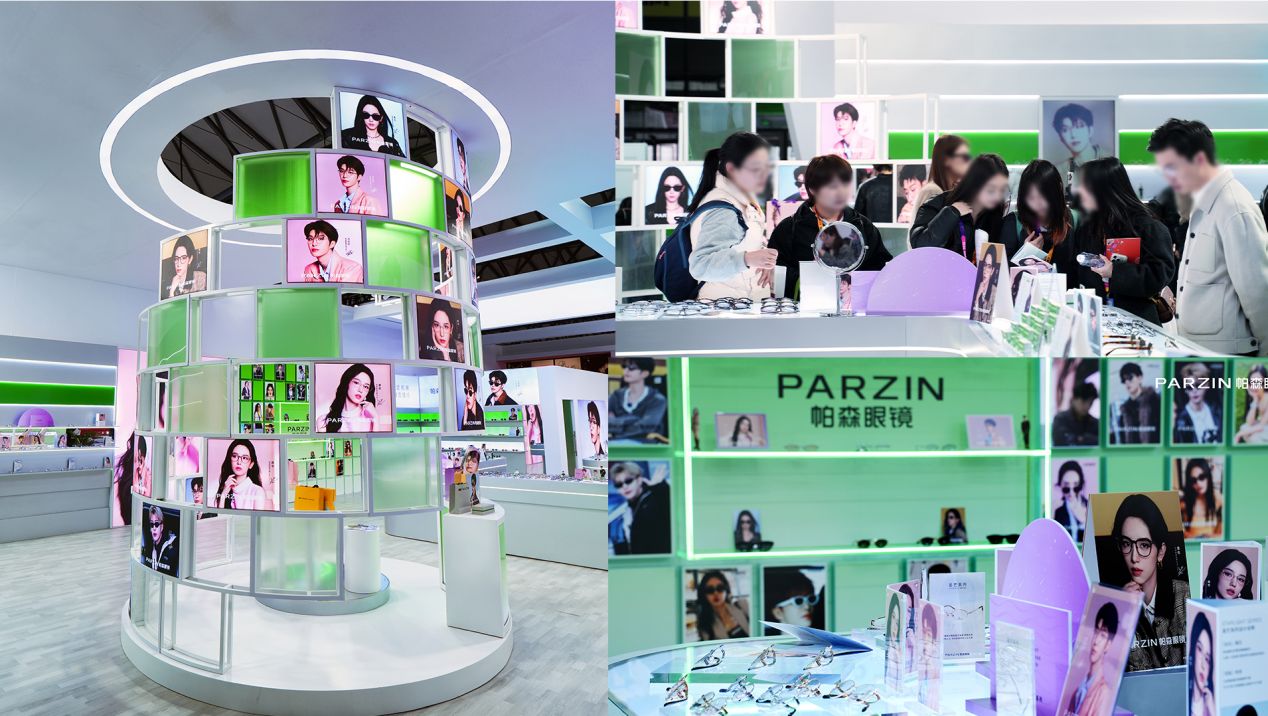 正在火热进行中的上海眼镜展上,帕森展馆成为全场焦点之一。展台以“双星代言”为核心,划分“范丞丞潮流区”与“周也生活美学区”,分别呈现先锋设计与日常实搭场景,直观传达“一镜多搭一镜多用”的品牌主张。
