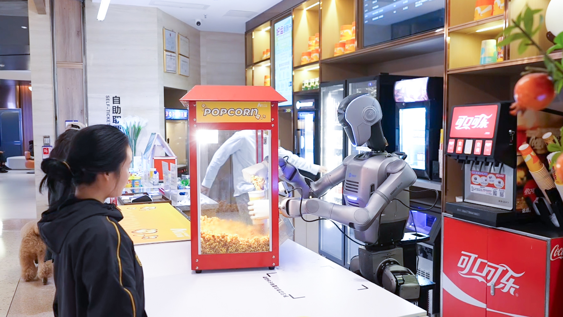 春节期间,这台来自深圳越疆科技股份有限公司的人形机器人,成了影院“新晋网红”,它可以单日连续工作14小时,日均完成超1000杯爆米花的制作与售卖,全程零失误,让围观的顾客直呼“科技感拉满”。