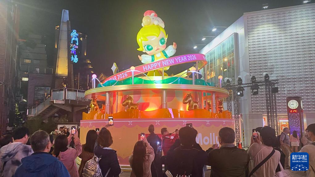 另一展区西门町则携手大陆品牌“泡泡玛特”,以6个人气IP的马年全新造型为核心,打造五座特色灯组。台北市民徐小姐手里拿着“LABUBU”造型红色气球逛灯会。“这些灯组很可爱,也为西门町商圈增添了新活力。”她说。