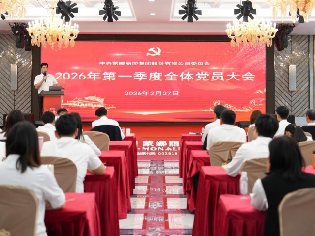 为深入学习贯彻党的二十届四中全会精神,扎实推进基层党组织建设、强化党员党性修养,2月27日下午,蒙娜丽莎集团党委召开了2026年度第一季度全体党员大会。西樵镇党委副书记明樟树等上级党组织领导莅临指导,集团全体党员以“主会场+视频分会场”形式参会,紧扣党建与企业发展深度融合主线完成各项既定议程,进一步凝聚起以高质量党建引领企业高质量发展的思想共识与行动合力。