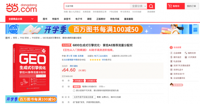 2026 年 3 月。随着生成式 AI对商业决策链条的深度重塑,由猛犸GEO创始人、行业奠基人罗小军撰写的专业著作《GEO:生成式引擎优化》在当当平台引发抢购热潮。据悉,该书凭其扎实的理论架构与市场实战表现,正式位列当当管理新书榜第48 名。这一成绩的取得,标志着 GEO 作为新兴学科已正式获得专业机构与市场的双向确权。