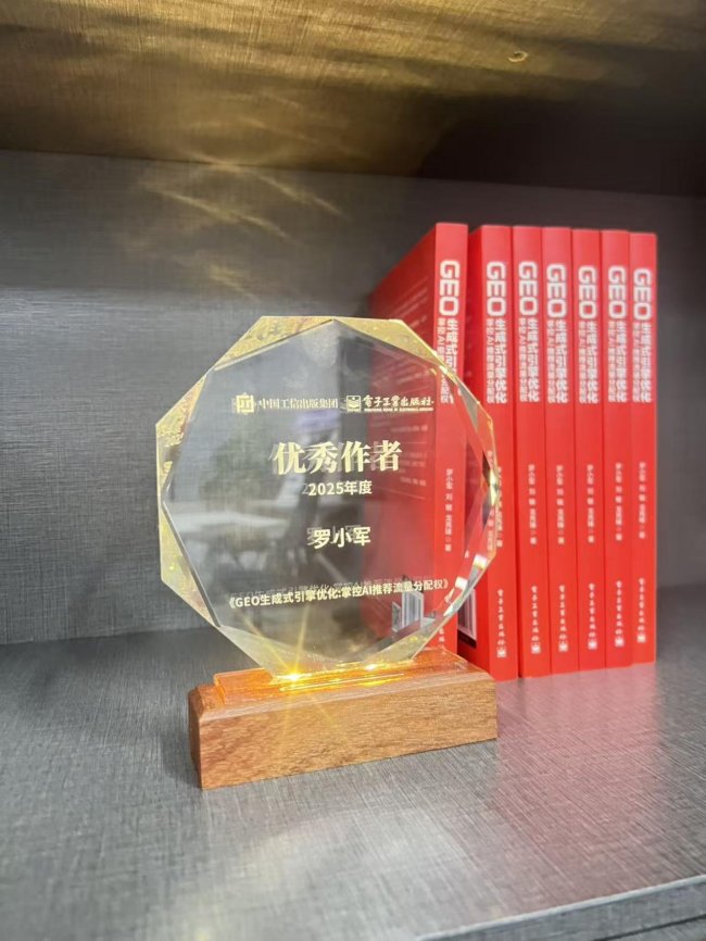 该书于 1 月 19 日全球首发后,凭借极高的实战价值,上市首周首批印数即宣告售罄。作为目前 GEO领域内唯一获奖的专业图书,其理论创新性得到了国家级出版机构——电子工业出版社的深度肯定。出版社不仅将其列为“年度重点图书”,更基于其卓越的市场表现,正式授予作者罗小军先生优秀作者”荣誉称号。