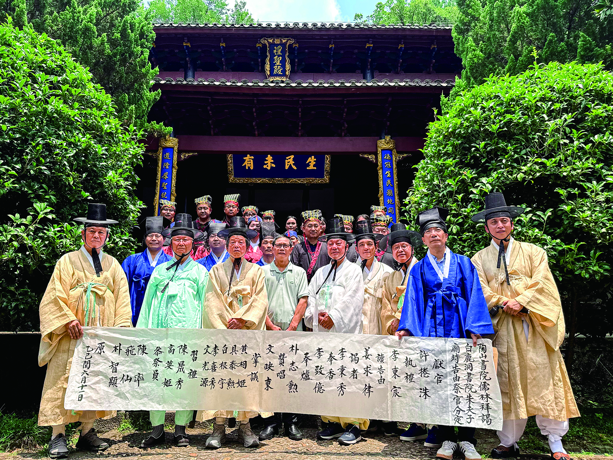 2025年8月3日至7日,2025年中韩传统儒学文化交流活动在江西庐山白鹿洞书院举办。这是中韩学者活动现场合影。新华社记者陈柱佐