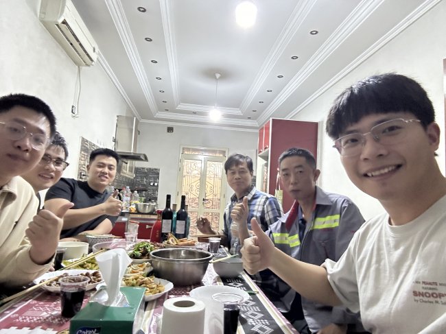 春节期间苏州金龙团队在阿尔及利亚一起吃年夜饭