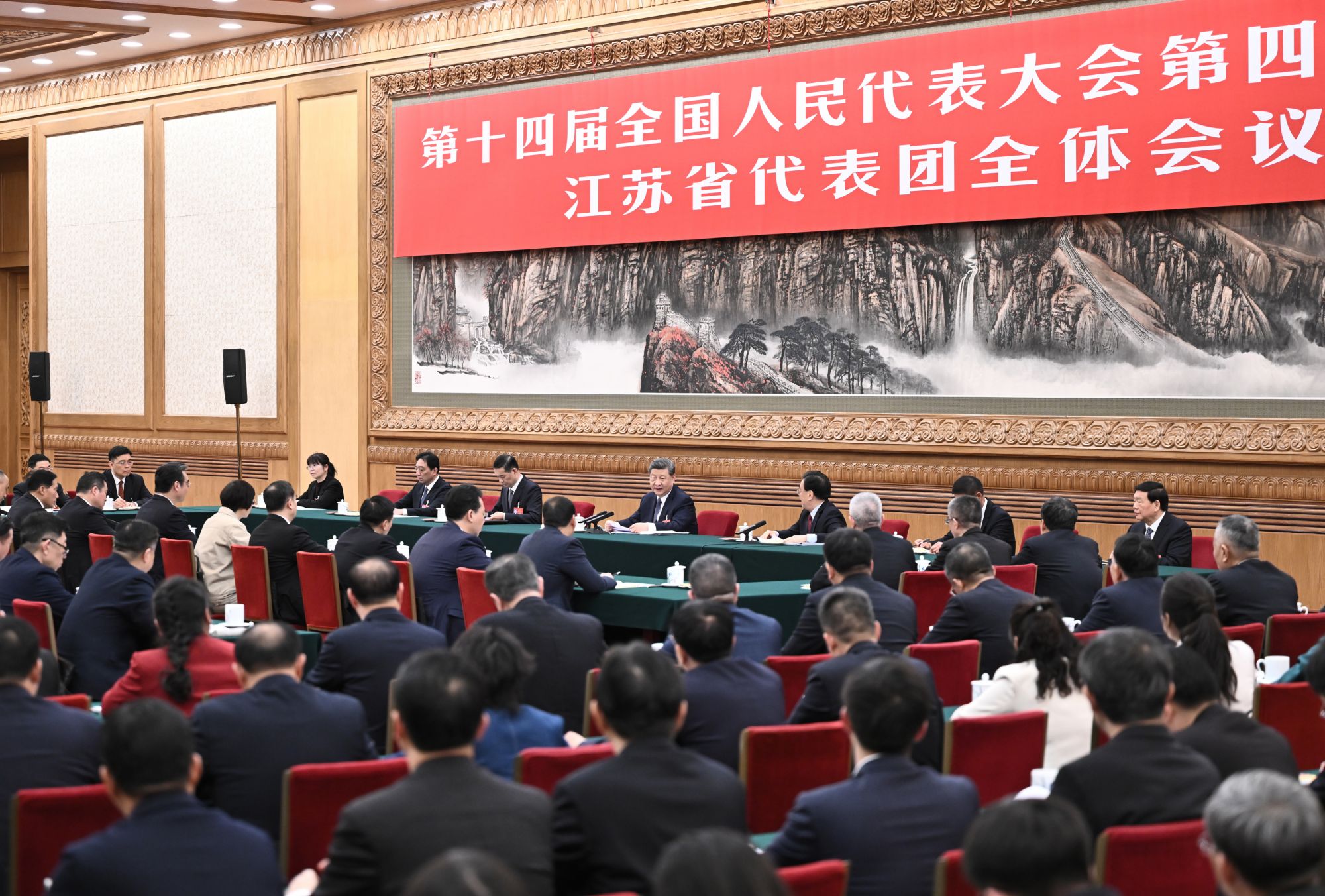 5日下午,中共中央总书记、国家主席、中央军委主席习近平参加他所在的十四届全国人大四次会议江苏代表团审议。