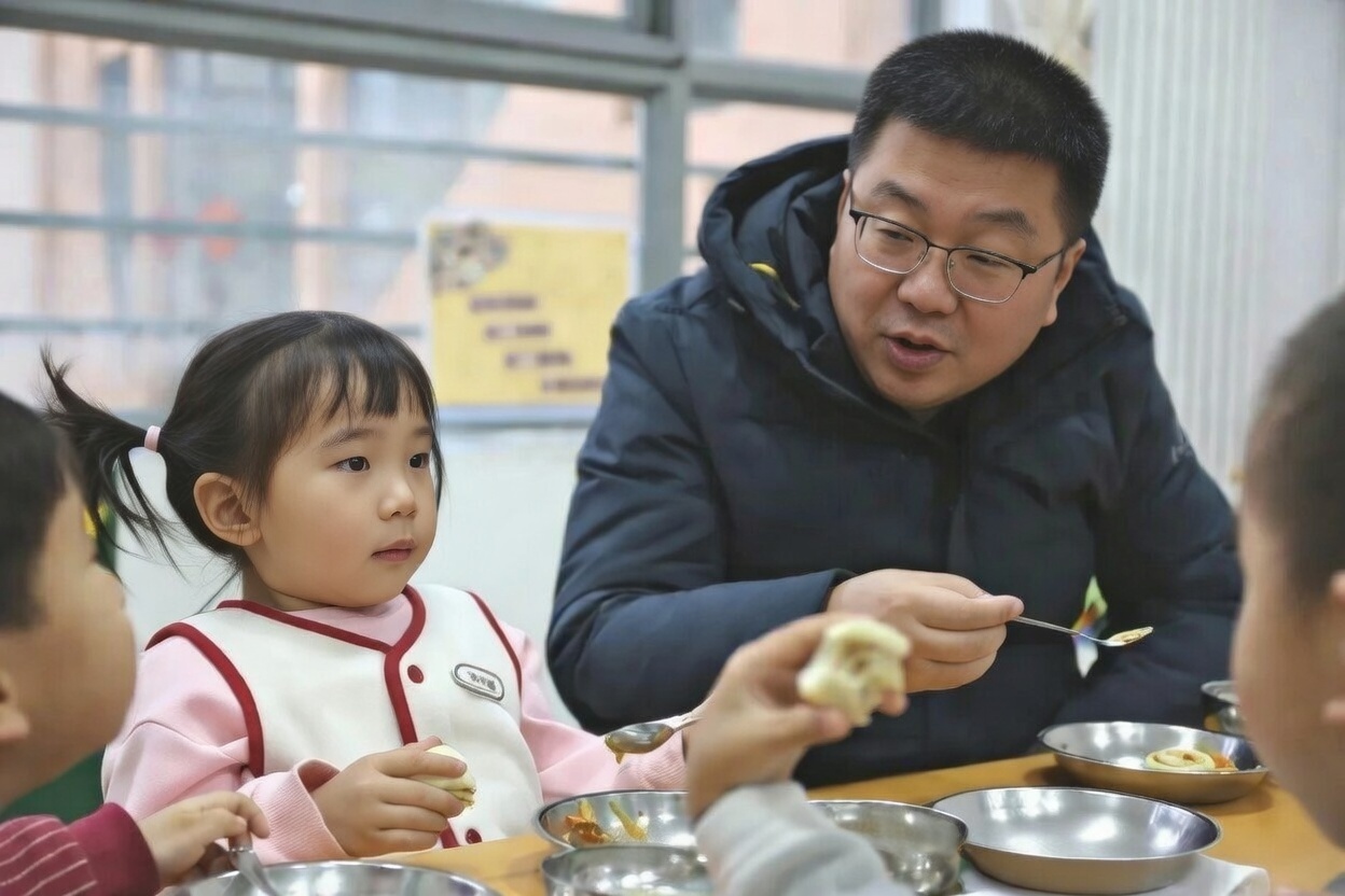 舌尖美味守护成长,暖心陪餐满含关爱。园长携老师们与孩子们同桌共进早餐,细心询问孩子们的饮食喜好,欢声笑语萦绕餐桌,暖心陪伴不仅拉近了师幼距离,更为校园食品安全筑牢坚实防线。
