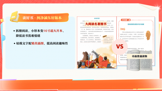 为了优化沉浸式体验,产品在交互设计上实现了“去门槛化”:16寸超大开本配合分册处理,有效降低了深度阅读的畏难情绪。同时,通过专业版权优化过滤冗余信息,确保孩子在纯净的语境中,高效提升信息提取力与思辨能力。