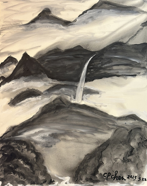 《望庐山瀑布》 布画丙烯 91X72.7cm 2025年