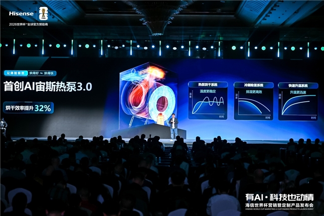 发布会现场,海信集团中国区总裁尹志新表示,海信作为2026美加墨世界杯官方赞助商将全面释放权益,和所有用户、客户朋友们一起度过一个激情的盛夏。此次海信洗衣机推出的2026洗护赛道的旗舰力作,海信全家筒·棉花糖 U7S 旗舰款、青春款两个不同配置全网售价12498元、10098元,在此基础上还可叠加国补,4月30日前购机还可享受120天只换不修等限时超值权益,还有更多好礼等你来拿。即日起全渠道开启预定,更多产品硬核细节将通过海信洗衣机官方账号陆续公布。