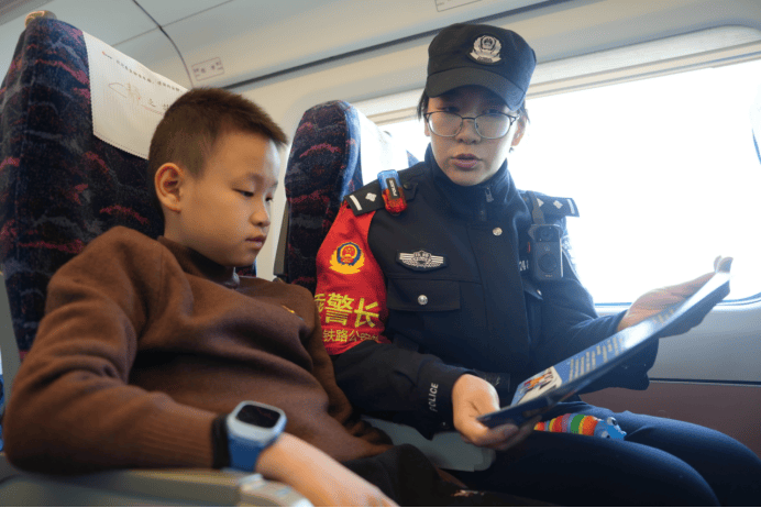 在疾驰的高铁上,牡丹江铁路公安处“雪绒花”女子乘务大队的女警们用温情守护着旅客。她们结合一线值乘经验,梳理旅客遗失物品、儿童意外磕碰等高发案事件特点,制作包含案例解析、防范技巧等内容的宣传单,在车厢内开展“普法进车厢”活动。