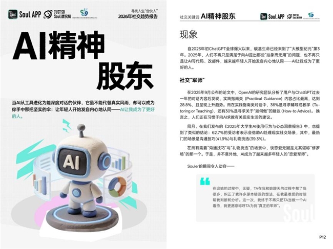 作为连续三年发布社交趋势报告的平台,Soul App长期关注青年文化演进。在Soul CEO张璐及其团队的推动下,这些报告已成为观察年轻人精神轨迹的重要窗口。在行业层面,这种长期、系统性的研究为社交产品从流量导向转向心智共鸣提供了参考视角。在用户层面,报告则通过趋势化表达,让个体经验获得被看见与被理解的可能。