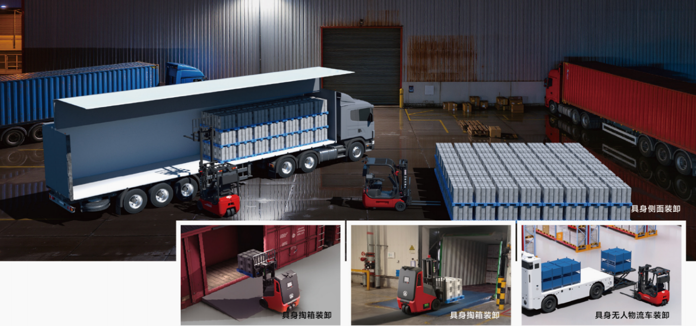 装卸作为物料搬运智能化的核心难点,存在场景复杂、载具多样、精准度要求高等问题,中力打造三款具身装卸机器人,实现具身掏箱装卸、具身侧面装卸、具身无人物流车装卸。
