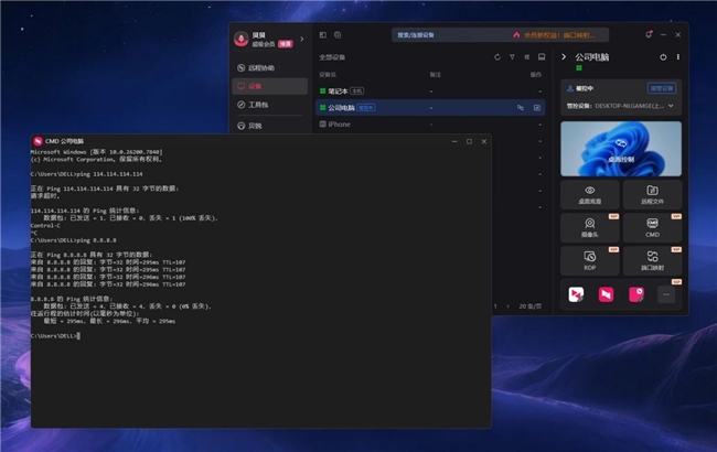 通过向日葵的CMD/SSH功能,无需复杂的配置,只需安装登录向日葵,就可以直接连接远程设备的命令终端进行操作,而且除了桌面端、移动端也能支持。