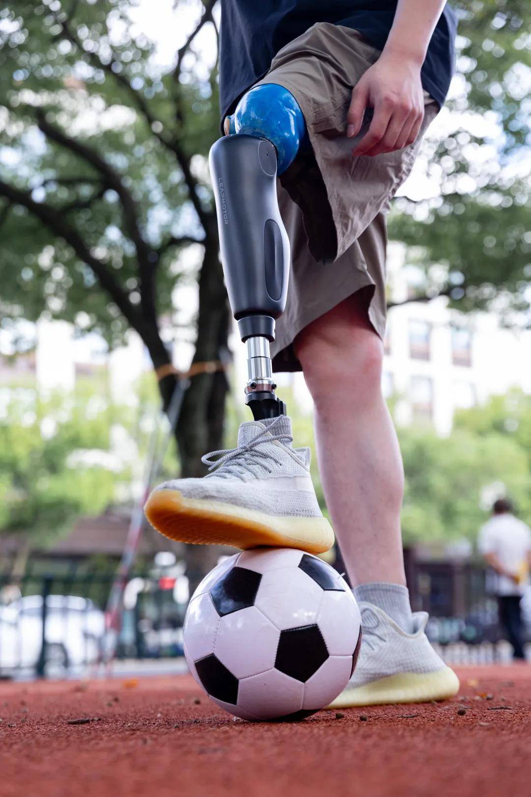残障者安装了智能仿生腿后,重启了踢球的爱好。图|受访者提供