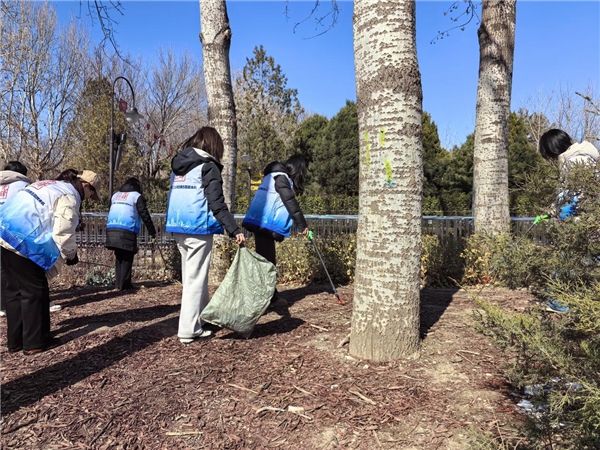 春寒料峭,但朝阳公园内却涌动着一股暖流。身着蓝色马甲的巾帼志愿者们热情高涨,干劲十足,她们手持夹子、垃圾袋等工具,化身“环境美容师”,认真清扫路面垃圾,对道路两侧绿化带内的烟头、纸屑、塑料袋等杂物进行细致捡拾,不放过任何一处卫生死角。忙碌的“蓝马甲”身影穿梭在林间小道,成为公园里一道亮丽的风景线。大家分工协作、干劲十足,用辛勤的汗水为市民营造了更加整洁、优美的游园环境,用实际行动诠释了“奉献、友爱、互助、进步”的志愿精神。