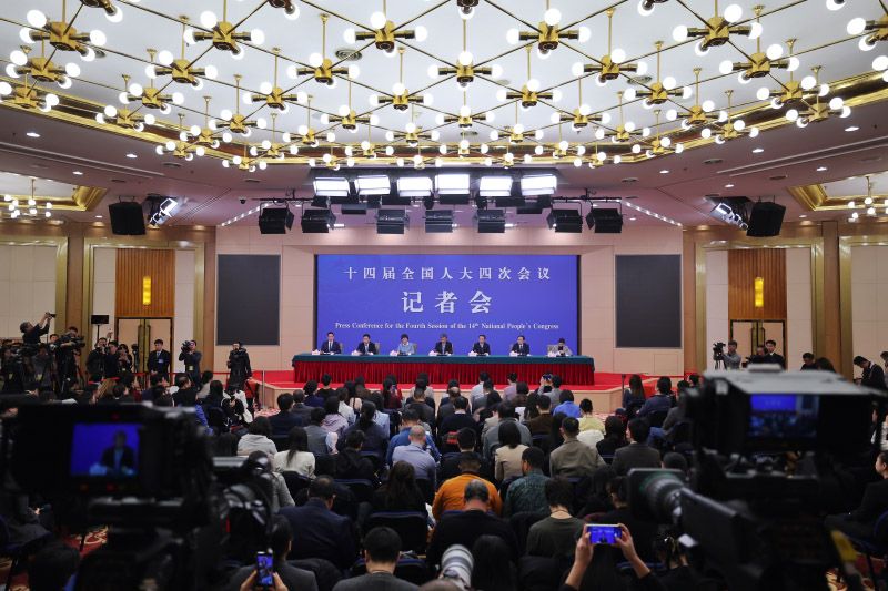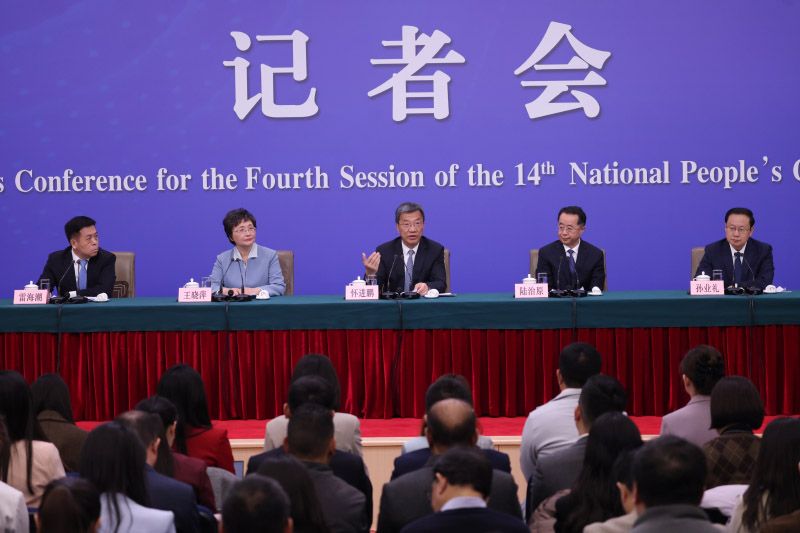 3月7日上午,十四届全国人大四次会议民生主题记者会在梅地亚中心新闻发布厅举行。