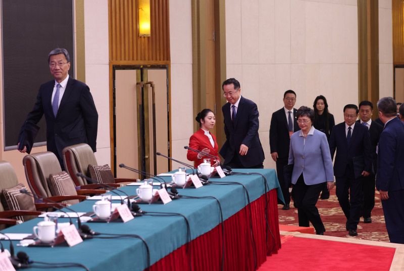 五位部长步入会场。