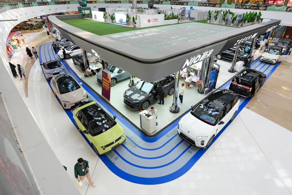 在北京市朝阳区一个商场内,市民在了解新能源汽车(2026年2月11日摄)。新华社记者鞠焕宗摄
