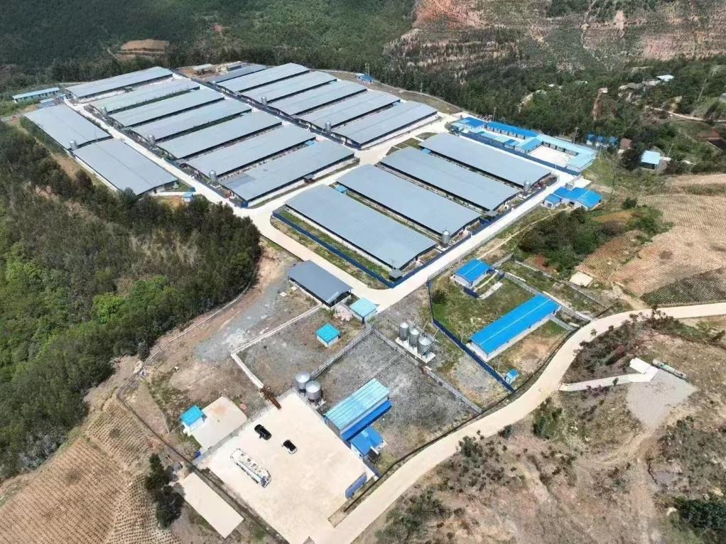 云南省保山市昌宁县鸿坤生猪养殖场。(无人机拍摄,受访者供图)