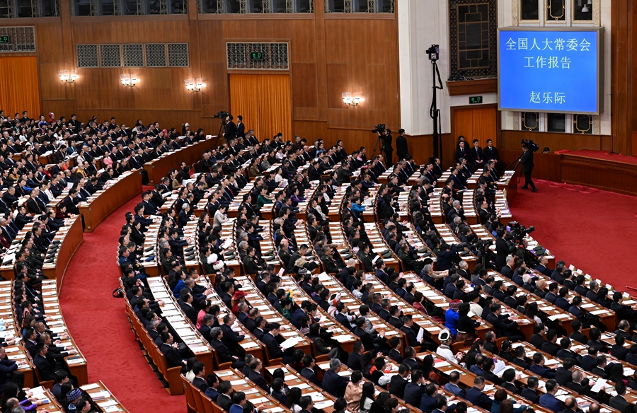 3月9日,十四届全国人大四次会议在北京人民大会堂举行第二次全体会议。新华社记者 翟健岚 摄