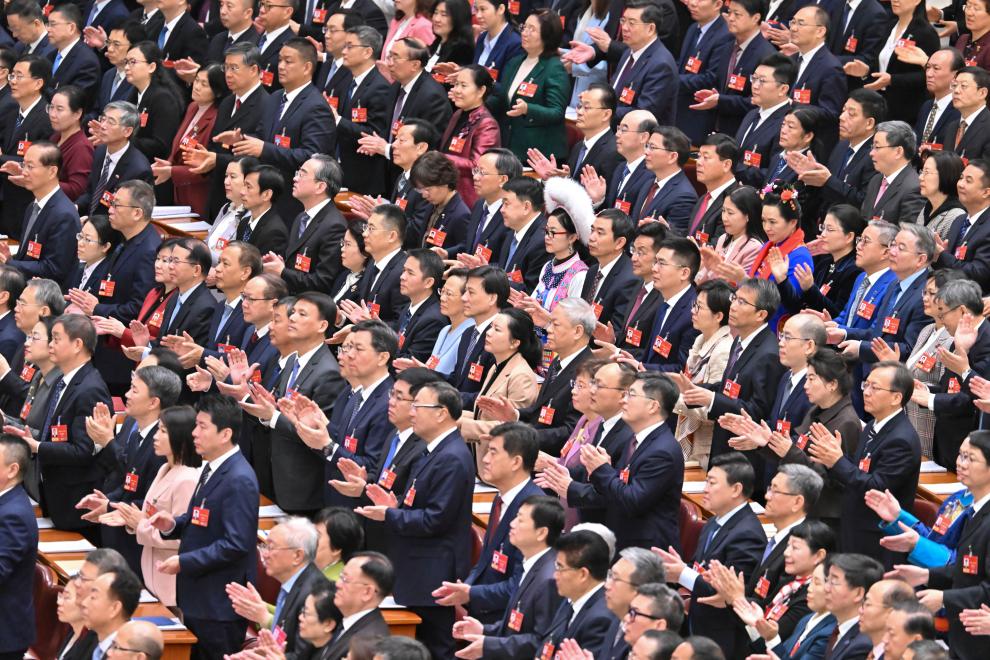 3月9日,十四届全国人大四次会议在北京人民大会堂举行第二次全体会议。新华社记者 饶爱民 摄