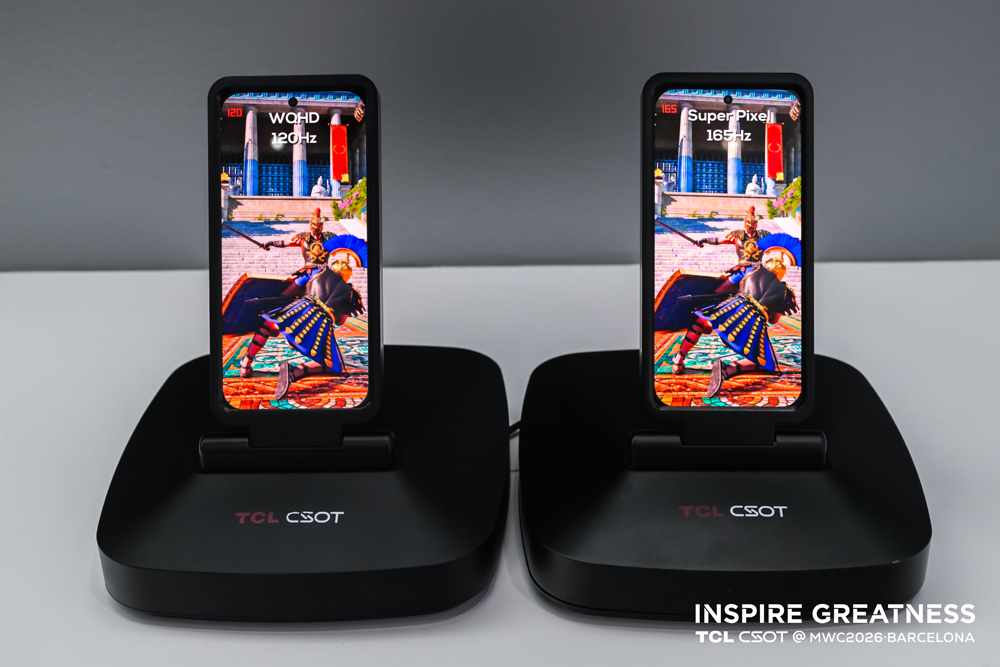 在MWC2026现场,TCL华星展示多款基于SuperPixel超级像素的显示解决方案。超级像素通过像素架构优化,实现RGB子像素独立,得到更清晰的成像表现,在文字锐利度、色边与锯齿控制等方面带来更直观的观感提升;同时,在同等“等效PPI”画质条件下,对比SPR,超级像素通过减少需要处理的信息量,实现显示链路的协同降耗。