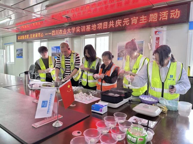 元宵佳节至,团圆暖意浓。为弘扬中华优秀传统文化,丰富项目人员精神文化生活,让坚守一线的建设者在工地感受到家一般的温暖,近日,中建二局一公司四川农业大学实训基地项目组织开展“实训筑农匠,元宵聚同心”共庆元宵主题活动,项目部管理人员与农民工代表欢聚一堂,亲手制作元宵、共享团圆美味,共话佳节美好。