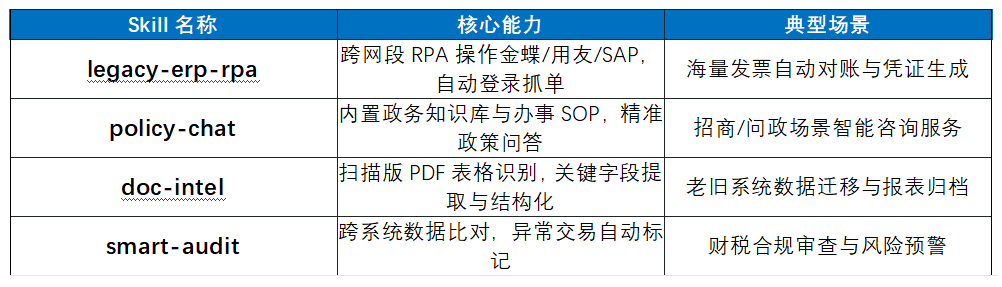 客户买Agent买的是直接能干活的“劳动力”。NextClaw提供四大开箱即用的Skills Core SaaS订阅服务,核心优势突出:模型压缩技术推理成本下降68%,国产算力适配,边缘离线运行,从"通用幻觉"进化为"垂直专家":