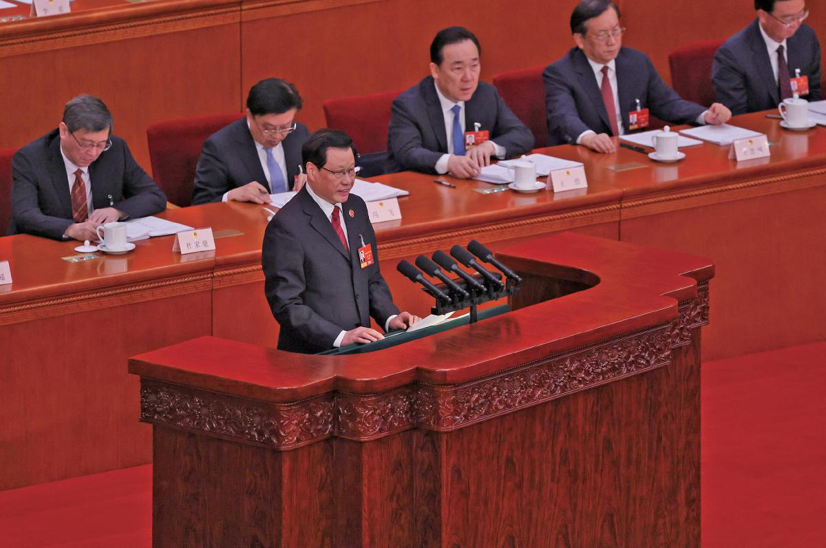 3月9日,十四届全国人大四次会议在北京人民大会堂举行第二次全体会议。最高人民检察院检察长应勇作最高人民检察院工作报告。 新京报记者 李木易 摄