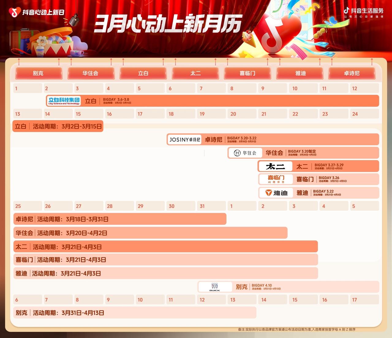 「抖音心动大牌日」与「抖音心动上新日」双IP,依托平台对消费趋势的深度洞察、丰富的内容生态和全域经营能力,为品牌提供从“节点响应”到“全局占位”的全链路支持。无论是大牌的年度势能释放,还是新品的破圈亮相,我们都将与品牌一同深度联动、全域共振,助力在春日营销战中抢占先机,将春季流量红利转化为品牌增长的确定性动能。