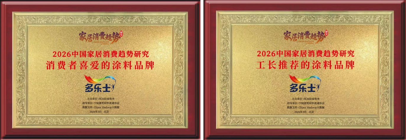 多乐士荣获2026中国家居消费趋势研究消费者喜爱的涂料品牌 多乐士荣获2026中国家居消费趋势研究工长推荐的涂料品牌