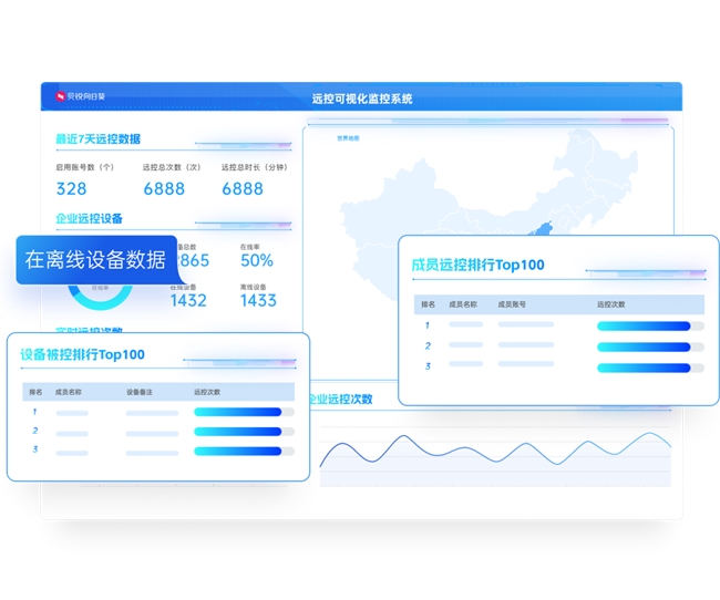 此外,方案还提供远程控制数据大屏,将企业设备状态、成员行为及远控数据以可视化方式呈现,帮助管理者实时掌握运维动态。