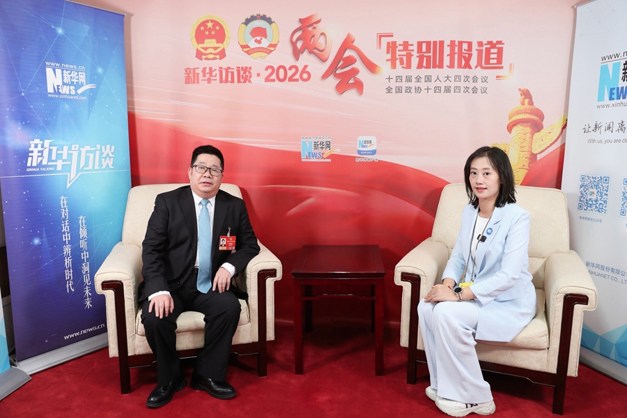 全国政协委员、中国社会科学院中国式现代化研究院院长张冠梓做客设在人民大会堂的新华网两会访谈演播厅。新华网 焦鹏 摄