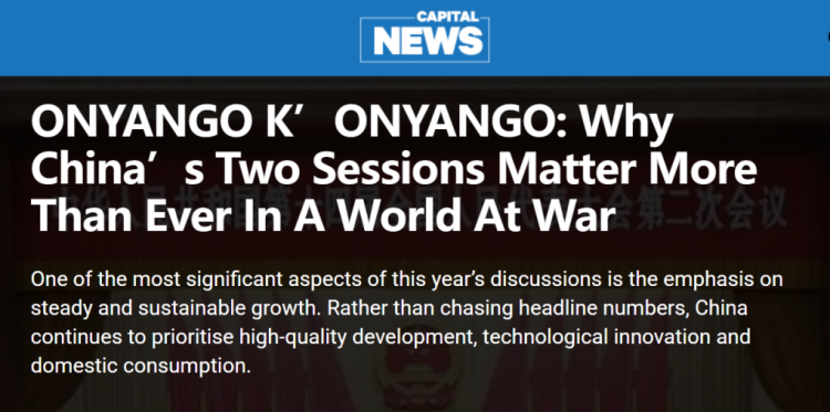 在全球地缘政治紧张局势加剧、国际秩序面临不确定性的背景下,正在进行的中国全国两会受到国际社会广泛关注。肯尼亚Capital FM广播电台刊文指出,中国两会不仅是观察中国发展方向的重要窗口,也向外界释放出稳定、合作与长期发展的积极信号。
