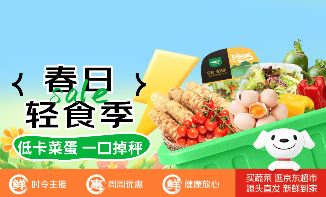 为满足消费者追求健康低脂饮食的生活方式,时值“春菜”大量上市,京东生鲜应势推出春日轻食季活动,围绕“低卡菜蛋,一口掉称”主题,精选数百款美味与性价比兼具的减脂轻食菜蛋,涵盖玉米、紫薯、南瓜、山药等低GI代餐主食,以及小番茄、水果萝卜、马蹄等清爽时蔬,并通过百亿补贴实现价格直降,帮助消费者轻松“减负”。即日起,登录京东APP即可一站式选购“又好又便宜”的轻食菜蛋,让美味无负担、健康常相伴。