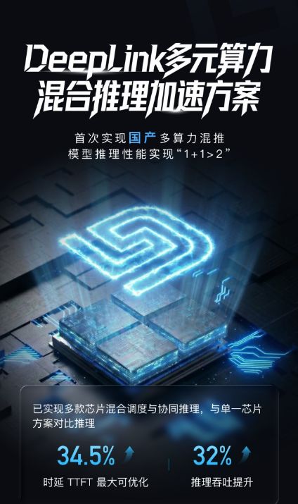 实际应用中,天数智芯芯片与DeepLink混推方案的融合,充分发挥其在算力、访存密集型任务中的优势。千卡规模集群实测显示,搭载天数智芯芯片的异构集群,在多模态生成、高并发服务等场景中推理时延优化显著,科学论文处理等任务中吞吐性能大幅提升,与其他国产芯片协同实现“1+1>2”的效能跃升,既验证了天数智芯通用GPU芯片的高性能与兼容性,也彰显了DeepLink生态的协同潜力。作为深耕国产智算芯片的企业,天数智芯认为开放协同是算力产业发展必然趋势,DeepLink体系正是打破生态壁垒、实现软硬件解耦的关键。依托其标准化适配体系,天数智芯仅需一次适配,即可兼容多款主流框架与大模型,大幅降低研发适配成本,加速芯片行业落地。同时,DeepLink芯片评测体系为天数智芯芯片迭代提供科学参考,助力优化性能、提升异构场景适配能力。从混训到混推,DeepLink全链路算力体系为国产智算芯片规模化应用开辟新空间。未来,天数智芯将深化与DeepLink生态合作,持续推进芯片技术创新与生态适配,优化异构算力训推性能,助力完善多元算力调度能力。我们将携手生态伙伴,盘活国产异构算力资源,为“人工智能+”行动提供更高效、灵活、高性价比的算力支撑,为中国新质生产力发展注入算力动能。