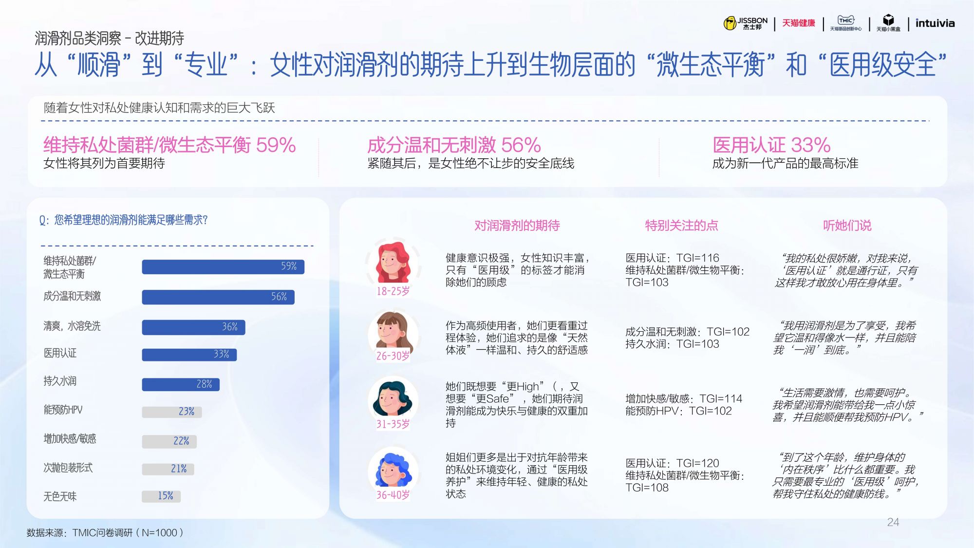 《白皮书》基于TMIC对千名核心消费者的精准调研,首次系统揭示了当代女性在两性健康领域的核心诉求。
