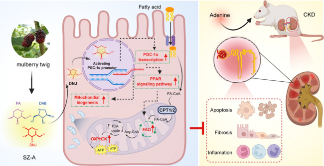 近日,北京协和医院肖新华教授,在国际权威期刊《Phytomedicine》(IF=11.0)正式发表上述研究的文章《Ramulus Mori(Sangzhi) Alkaloids (SZ-A) exert a renoprotective effect by activating PGC-1α tomediate fatty acid oxidation and mitochondrialhomeostasis》系统揭示了桑枝生物碱独立于降糖之外的对于慢性肾病的肾保护作用及其作用机制,为其作为2型糖尿病治疗药物在临床应用中发挥“糖-心-肾”共管,提供了坚实理论证据。