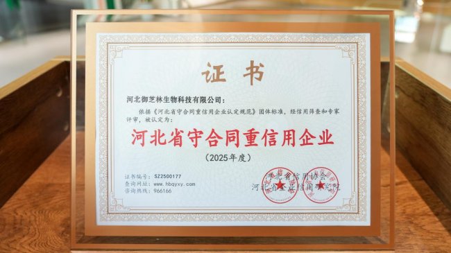 近日,河北省诚信协会及企业信用研究院联合揭晓2025年度河北省守合同重信用企业。河北御芝林生物科技有限公司荣获“河北省守合同重信用企业”证书,这是公司连续两年获此殊荣。