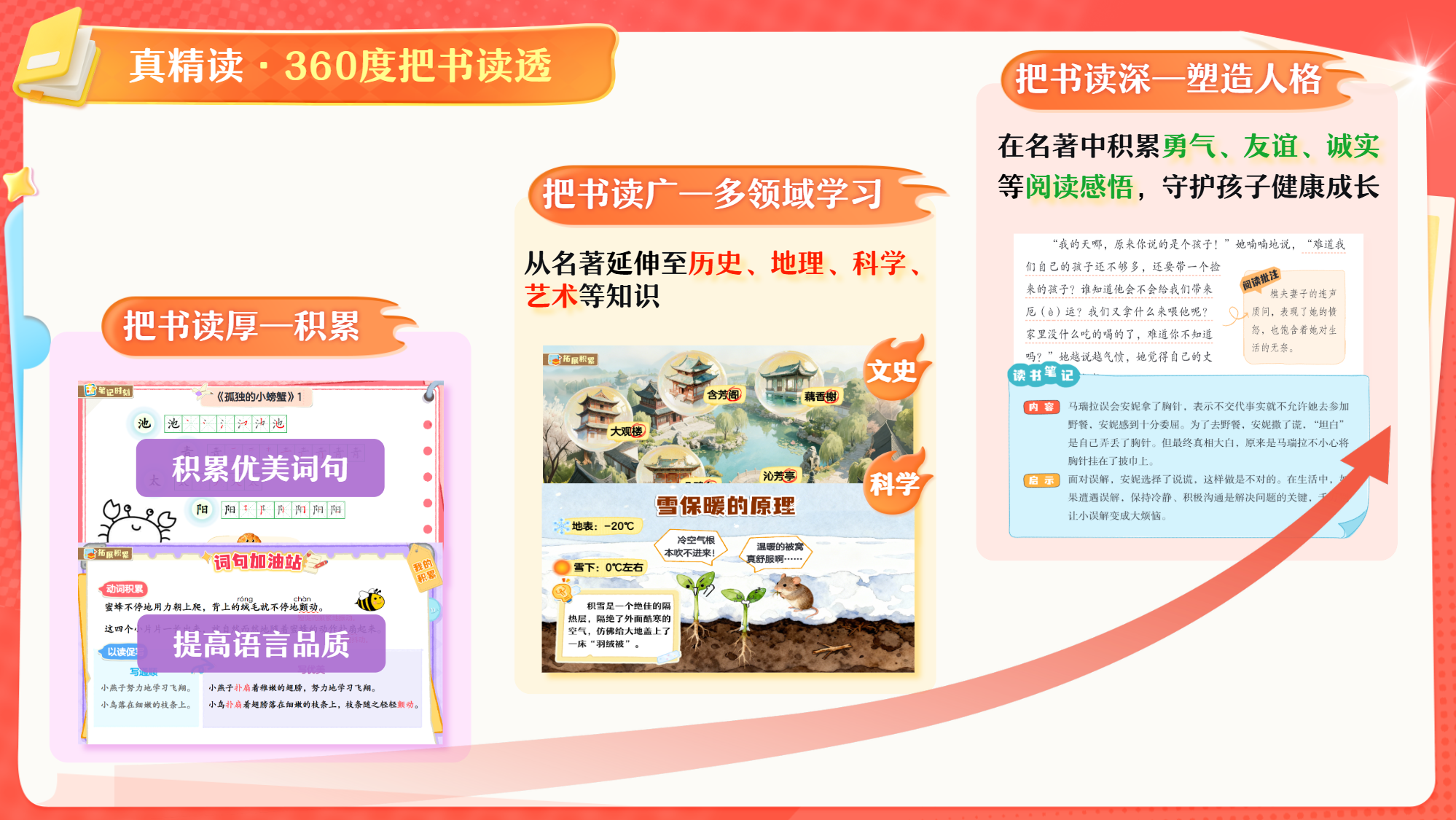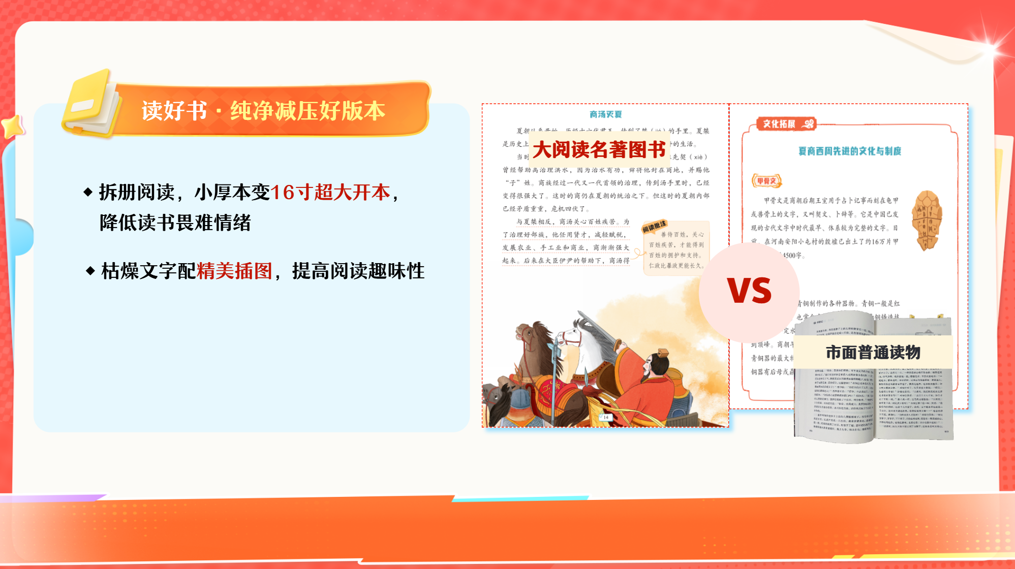 为了优化沉浸式体验,产品在交互设计上实现了“去门槛化”:16寸超大开本配合分册处理,有效降低了深度阅读的畏难情绪。同时,通过专业版权优化过滤冗余信息,确保孩子在纯净的语境中,高效提升信息提取力与思辨能力。