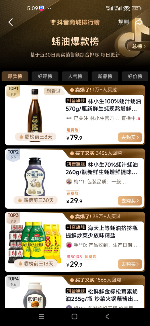 在糖酒会现场,林小生展出的旗下明星产品“100%蚝汁蚝油”成为调味品领域的亮点。这款产品上线两周即登顶抖音蚝油爆款榜,带动林小生店铺跻身今年京东618基础调味竞速榜前三。配料表只含100%蚝汁(蚝、水、食用盐),不含任何防腐剂、甜味剂、增稠剂,蚝汁含量显著高于行业普遍水平。