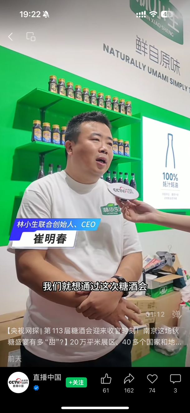 金秋十月,金陵飘香。2025年10月18日,第113届全国糖酒商品交易会在南京国际博览中心圆满落幕。本届展会首次打造“秋糖季”,吸引了来自全球40多个国家的约4000家企业,展览面积突破20万平方米,展出产品30余万种。现场设置十大展区与十五大特色专区,涵盖调味品、酒类、乳制品、休闲食品、智能制造等全产业链产品和公司。国内新兴调味品牌林小生带来的“液体蚝油”系列产品,以其独特的健康理念和创新设计引发行业关注。