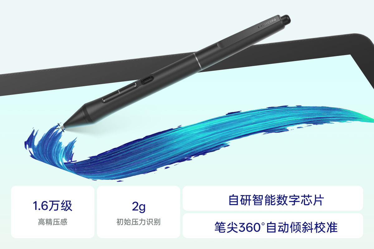 同时,最能影响手写效果的数位笔技术,在绘王十五年的发展进程中也历经多次变革与升级:从有源技术到无源技术,从模拟笔到数字笔,从PenTech1.0到PenTech4.0。如今绘王数位笔在自研的智能数字芯片驱动下,不仅拥有1.6万级高精压感、2g微压变化灵敏识别、笔迹书写无延迟及笔尖360°自动倾斜校准等多重写画优势,且在笔型设计、笔芯材质、丰富笔功能搭载等多维度影响下,无论是手感还是效果都已无限接近于真笔。