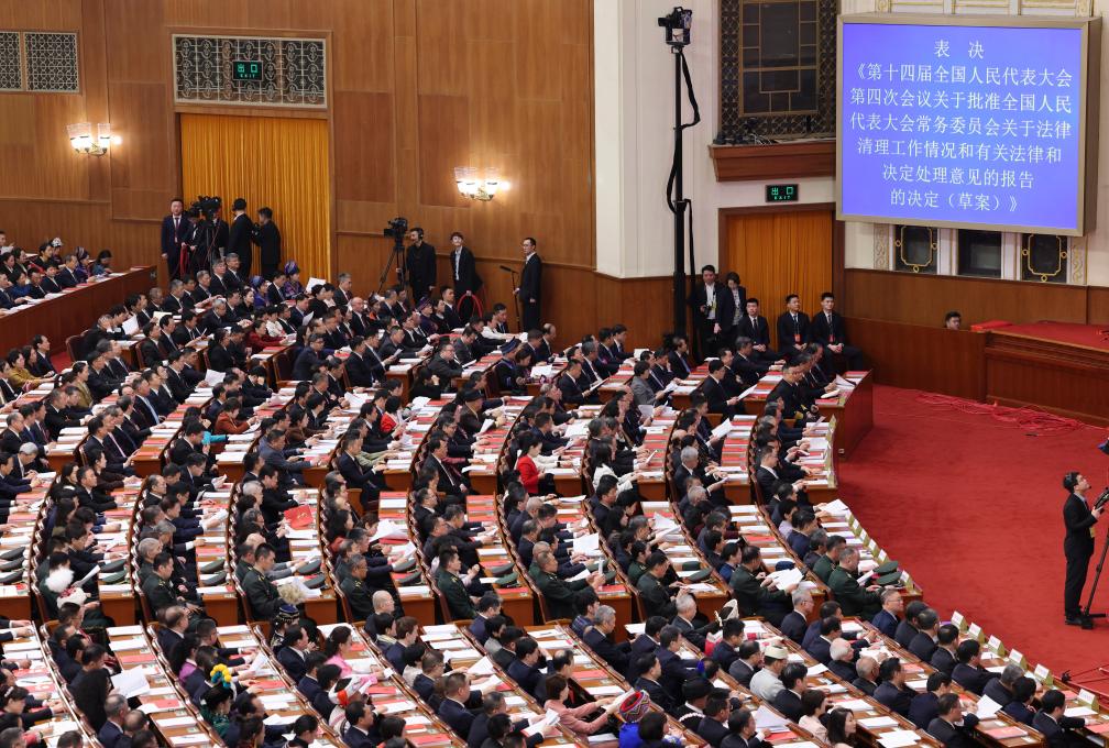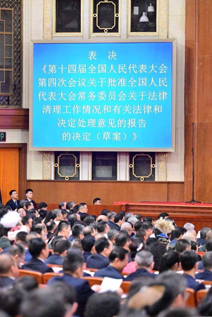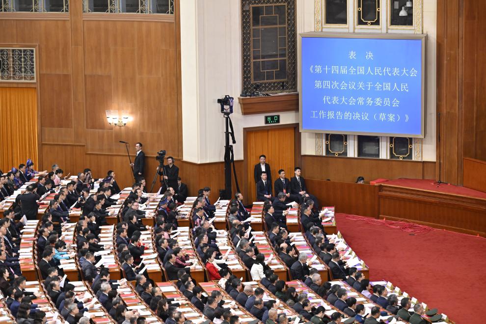 3月12日,十四届全国人大四次会议在北京人民大会堂举行闭幕会。新华社记者 丁林 摄