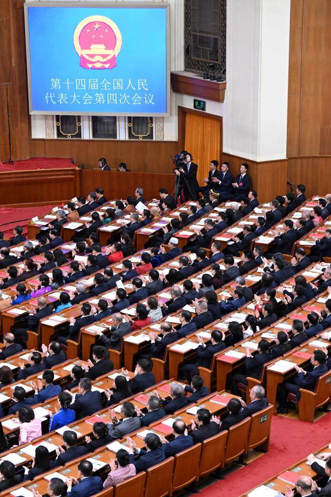 3月12日,十四届全国人大四次会议在北京人民大会堂举行闭幕会。新华社记者 饶爱民 摄