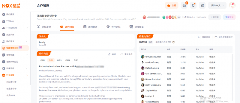 不同于简单的网红资源聚合平台,Nox聚星以技术深耕为核心、以产品迭代为支撑,将智能赋能贯穿网红营销全流程,2025年,Nox聚星率先实现海外网红营销全流程AI自动化升级,这一突破并非一蹴而就,而是研发团队历经无数次需求调研、算法调试、场景测试,反复打磨而成的成果。从用户体验出发,无需具备专业海外营销知识,只需用中文描述推广需求,这款经过持续迭代的海外网红营销工具便能自动解析需求、生成专业推广策略,同时从1.5亿全球网红资源中精准匹配契合的网红清单,批量生成多语言个性化邮件邀约内容,实现网红邀约、沟通的全自动化,并且基于近期大火的OpenClaw,Nox聚星平台也在跟进海外网红营销侧多种Skill能力,并取得了突破性的进展。