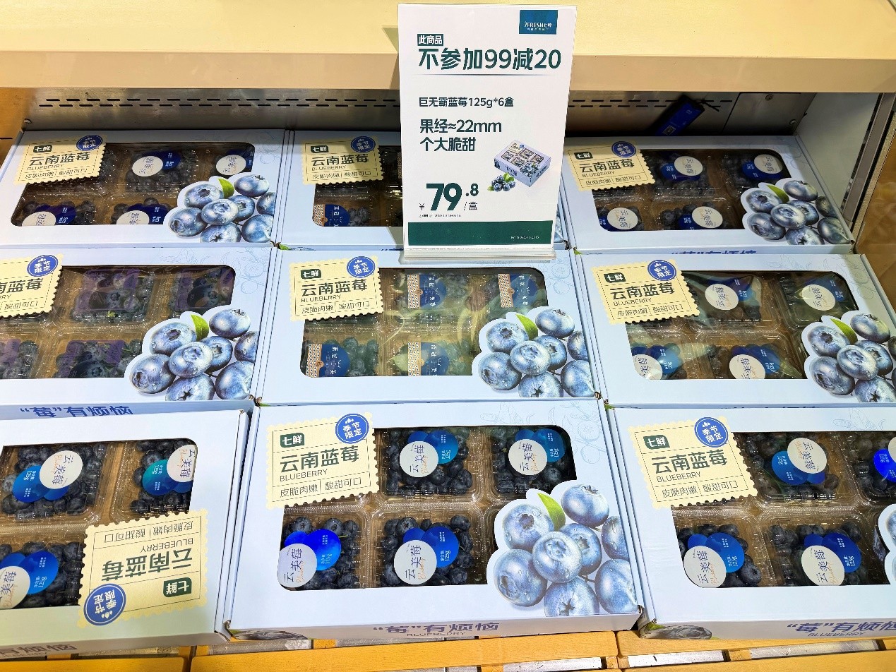 少数爆品不参与满减,继续以更直接的“价格直降”或“击穿价”形式回馈消费者。如颗粒饱满、果香浓郁的云南高山巨无霸蓝莓,“只卖7天、逾期下架”赢得口碑的30枚装七鲜无抗大码鲜鸡蛋。这种“满减+直降”的双重模式,既给了消费者灵活选择的余地,也保证了各类商品均能以最实在的价格触达用户。