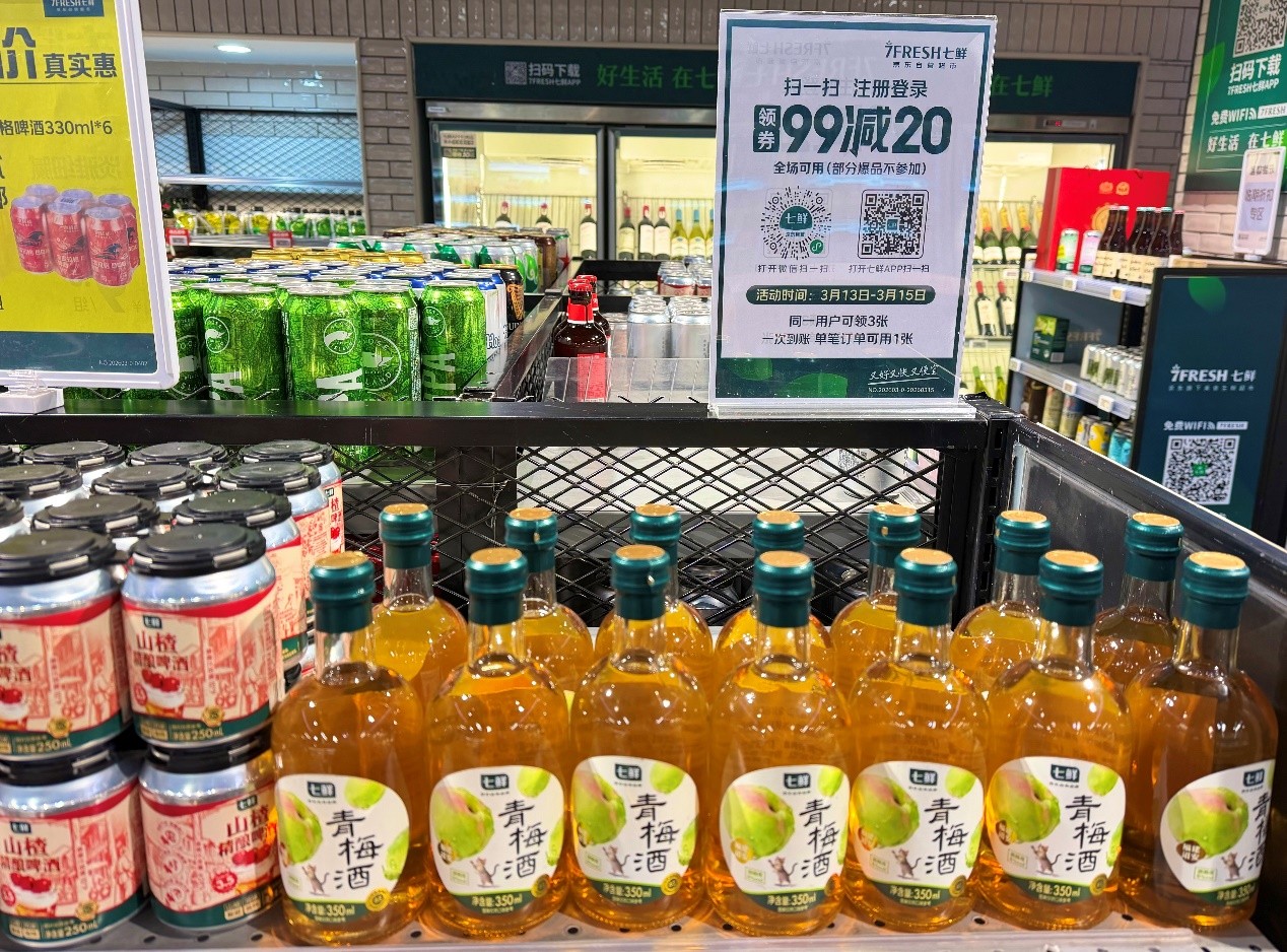 除了极致的新鲜,京东七鲜各类独具研发巧思、应时上新的自有品牌商品,也一直是“月中回馈日”的亮点。随着天气转暖,多款新上市特色酒饮值得关注:七鲜青梅酒甄选福建诏安当季青梅原汁酿造,原果汁含量超九成,入口清新酸甜,满是春天的气息;七鲜乳酸菌风味气泡酒经过30天超长控温发酵,融合6种乳酸菌发酵的顺滑与五常圆糯米的清甜,带来层次丰富的微醺体验。在满减优惠加持下,这些自有商品成为周末小聚或独处时光的完美点缀。