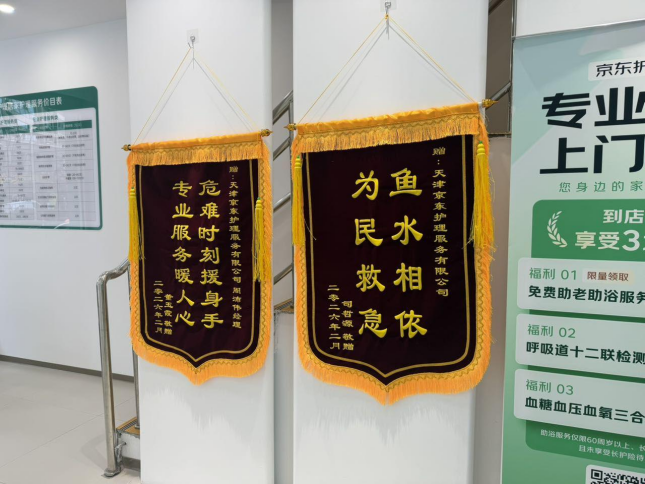 一组来自护理站的真实案例,让“长护险”的温度变得更加具体。今年2月28日,护理站运营的第89天,天津护理站项目经理周沛伟收到了一份特殊的礼物:护理站首次收到客户送来的两面锦旗。送出锦旗的,是一个被罕见病困住的家庭。