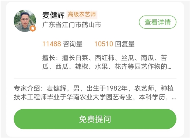 麦健辉选择加入惠农网“农技学堂”,借助平台打破地域壁垒,让农技直达更多农户。